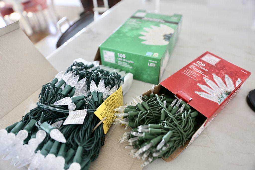 We just started decorating our tree but here it is with the two sized lights so far. I think once we dress the rest, it will look fantastic! I’ll post another picture once we are done!